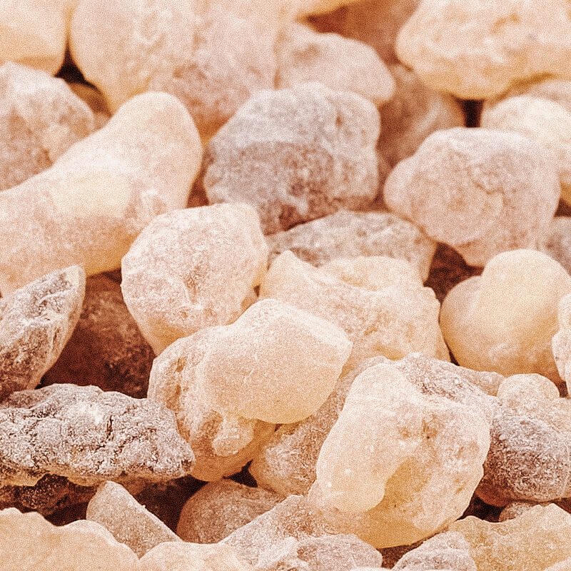 From India all the way to the Horn of Africa and passing through the Sultanate of Oman, the olibanum resin is harvested by cutting into the bark of the Boswellia tree to awaken its woodsy, aromatic, balsamic, mineral, spicey and lemony tonalities.